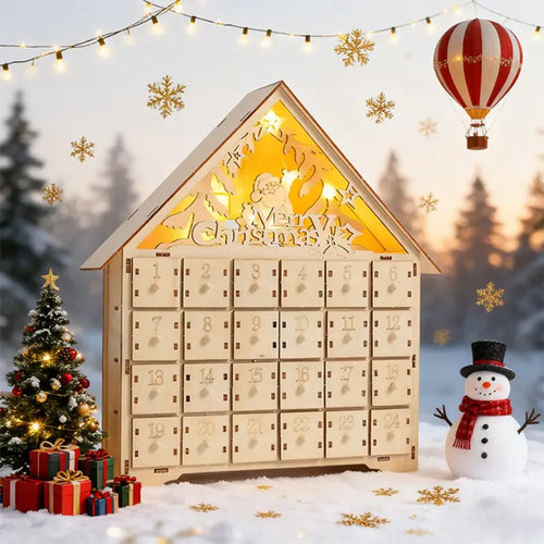 Xmas Wooden Advent Calendar – 24 Drawer Countdown Decoration (30x5x38cm)