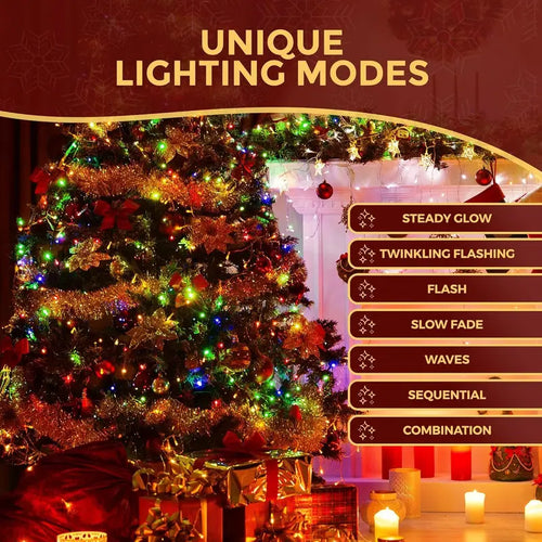 Festive Fix Multicolored LED Christmas Tree Lights – Waterproof Fairy String Lights with Timer & 8 Modes (100–500 LEDs, 10m–50m)